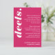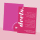 Our minimal, bold retro style wedding enclosure card is perfect for the trendy couple who loves standing out and making a bold statement. Bold bright pink-magenta colour combo. Simple minimal design creates a bold look with "Deets." displayed boldly in white large font. The reverse side features a simple modern design with a bold monogram and an optional couple's wedding website address. Designed by Moodthology Papery