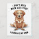 A brown dog sitting down calmly with the words I dont need your attitude in a defiant and wise manner.