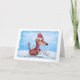 Cute little dachshund getting ready for a snowball fight-- and hoping he's still in good with Santa. Brown cartoon dachshund is holding a snowball, standing by a pretty big pile of his future projectiles. Background has a blue snowy sky, and a white border round the card.