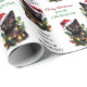 The cute pattern on this festive Christmas wrapping paper is of a bewildered looking black cat wearing a red and white Santa Claus hat. He is tangled up in a string of Holiday tree lights. The image is repeated across the surface, with black text that says "Dear Santa, Define NAUGHTY". Your own custom greeting and signature is in red and green, also.
