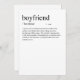 Ajoutez une touche d'humour et de style à votre cadeau de la Saint-Valentin avec cette carte amusante "Définition du Petit Ami". Caractérisée par une typographie minimaliste et spirituelle ainsi qu'un design épuré, elle délivre un message amusant et léger qui fera certainement sourire votre moitié. Il y a également un espace vierge où vous pouvez inclure votre message manuscrit personnalisé pour lui. Vous souhaitez une caractéristique spirituelle et personnalisée ajoutée à la définition ? Contactez-moi à : shahirah.creates92@gmail.com, et je la rendrai unique pour vous.