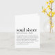 Cherchez-vous la carte parfaite pour votre meilleure amie ? Ne cherchez pas plus loin ! Cette carte de définition de sœur de l'âme qui fait du bien est la carte parfaite pour montrer à quel point vous appréciez votre meilleure amie ! Que vous cherchiez une carte d'anniversaire significative pour votre meilleure amie ou simplement une carte attentionnée pour lui rappeler à quel point elle est spéciale, cette définition de sœur de l'âme mettra certainement un sourire sur son visage.