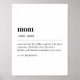 This poster features a funny definition of the word "mom." Also available in white on an elegant black.