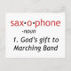 The true definition of a saxophone - God's gift to marching band. Makes a great musician gift!