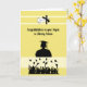This is a lemon yellow card, (the colours of your degree), with a silhouette of a female graduate with a group of graduates throwing the caps in the air, and a certificate of graduation. This is a design for a degree in Library Science and is perfect for the occasion. Thanks to the hungryjpeg for some of the elements in the design.