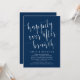Ceci est un modèle editable de carte d'invitation de mariage en fuite, écriture moderne bleu marine (Déjeuner du bonheur éternel). Une carte parfaite pour inviter votre famille et vos invités chéris pour l'annonce de votre mariage en fuite et la célébration de la réception. Ajoutez les détails de votre célébration dans la même police / lettrage.