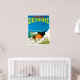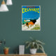 A Delahaye car ad with an orange race car racing a speed boat off shore. A colourful graphic with a dramatic style. We carefully balance and restore original colours with fold creases and defects digitally corrected. Posters have a boarder to facilitate convenient framing. Compare.
