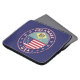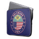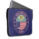 Badge of Delaware with flag of Delaware and flag of USA colors, rounded shape.