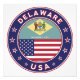 Badge of Delaware with flag of Delaware and flag of USA colours, rounded shape.