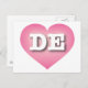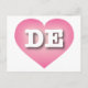 This postcard features a calm, cool pink heart with a white-washed centre containing the bold white upper case letters DE, the official abbreviation for the state of Delaware, the first state. The reverse side of the postcard is blank awaiting your handwritten sentiments or customized text.