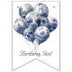 watercolor painting of a bunch of balloons decorated in beautiful Delft Blue designs