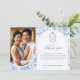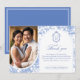 Delft Blue Floral Chinoiserie Monogram Wedding Thank You Card