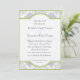 This vintage inspired wedding collection has a complete ensemble of products. This design consists of a detailed vintage carved etching pattern that has been made into the background. It has a toile damask feel to it. The gentle lime green border on a quatrafoil central design and outer edging give it a contemporary essensce and unpredictability. The artwork was painted in antiquity and rearranged into a pleasing colour palette and layout. The reverse side is a deeper blue version of the same pattern.