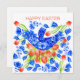 A bird in blue Delft finery amongst the Spring Tulips. From hand-drawn and painted Anni Arts illustrations. Personalize your greeting.