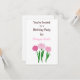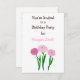 Un design mignon avec trois fleurs de chrysanthème rose avec des fleurs moelleuses et de longues tiges vertes. Customisez avec toutes les informations de votre fête d'anniversaire selon vos besoins.