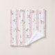 Délicat motif floral rose grand ensemble de serviettes de bain - Le motif floral avec des fleurs délicates rose et jaune avec des feuilles verts dispersés sur un arrière - plan de rayures rose et blanc. Les rayures blanches sont bordées d'une bordure décorative en dentelle.
