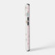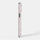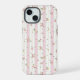 Boîtier de téléphone rose à motifs floraux - Le motif floral romantique avec des fleurs délicates rose et jaune avec des feuilles verts éparpillés sur un arrière - plan de rayures roses et blanches. Les rayures blanches sont bordées d'une bordure décorative en dentelle.