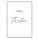 This delicate black calligraphy table twelve table number is perfect for a modern wedding. The romantic minimalist design features lovely and elegant black typography on a white background with a clean and simple look. The card prints on the front and back (double-sided). Other table numbers in the collection are sold separately.