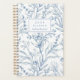Personalize this planner with your name in blue italics framed by a white rectangle, on a delicate botanical pattern of blue line art flowers and foliage on a white background.