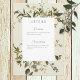 This beautiful delicate wedding details enclosure card design is elegant yet simple. It is made up of a white text box surrounded by delicate botanical greenery in a soft bouquet on a soft green background. This design is part of the Delicate Boho Greenery Wedding Suite collection created by Simply Farmhouse Press.