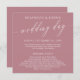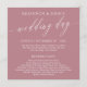 An elegant wedding day schedule with elegant fonts and a delicate calligraphy script in pink and white. Add your schedule and the names of your wedding party! Clean, simple, timeless, and elegant.