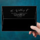 This delicate dark black calligraphy wedding invitation envelope is perfect for a modern wedding. The romantic minimalist design features lovely and elegant white typography on a black background with a clean and simple look. Personalize the envelope flap with your return address.
