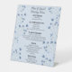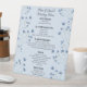 Immerse yourself in elegance and celebrate in style with our exquisite wedding tabletop menu sign. This stunning sign features delicate dark blue flowers on a light blue background, exuding an air of sophistication and charm. Inform your guests of the tantalizing array of delectable delights that await them with this beautiful sign, setting the stage for a memorable and delicious event. Elevate your wedding day gathering with this stunning signage, serving as the perfect introduction to your special day's culinary delights.