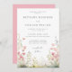 This design features an illustration of delicate wildflowers and butterflies in shades of pink and green.