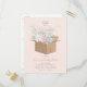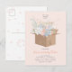 A beautiful and delicate design featuring a cardboard box filled with bursting flowers, ideal for mail in baby showers and virtual unboxing parties, for those living abroad away from many loved ones.