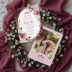 Delicate Floral Oval Quinceañera Tiara Invitation Design in Burgundy Tones with Photo Layout.