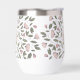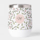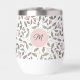 This stemless wine tumbler features a retro-inspired floral design that's  pure cottagecore bliss. Hand-drawn soft pink flowers and delicate green leaves dance across a clean white background, creating a charming and romantic feel. Click “Personalize this Template” to easily change the featured monogram and make it truly yours. Whether you’re hydrating or sipping something stronger, it’s your portable garden party in a cup.