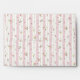 Delicate Floral Pattern Envelope - The romantic floral pattern featuring delicate pink and yellow blossoms with green leaves scattered across a background of pink and white stripes. The white stripes are edged with a decorative, lace-like border.