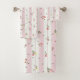 Delicate Floral Pattern Pink Large Bath Towel Set - The floral pattern featuring delicate pink and yellow blossoms with green leaves scattered across a background of pink and white stripes. The white stripes are edged with a decorative, lace-like border.