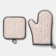 Delicate Floral Pattern Pink Mitt & Pot Holder Set