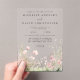 This design features a delicate watercolor illustration of wildflowers in shades of green and pink.