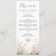 This design features a delicate watercolor illustration of wildflowers in shades of green and pink.