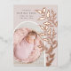 Chic and modern birth announcement features a single vertical/portrait oriented photo in an arched layout, with climbing vines of rose gold foil botanical leaves along the right side. Personalize with your baby's name, birth date, and stats, and add a personal message to the back, along with an additional photo.