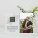 This save the date features charm and simplicity, with the bride and grooms names centred atop a bed of delicate foliage, and a photo of the bride and groom. Change the colour of the square in the middle to suite any colour choice you have for your wedding! Please contact us if you would like help with customizing this invitation.