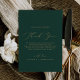 This delicate gold and green thank you reception card is perfect for a modern wedding. The romantic minimalist design features lovely and elegant champagne golden yellow typography on an emerald green background with a clean and simple look. Place these cards at the table setting for each of your guests at your wedding reception. Personalize the card with your names and a special thank you message.