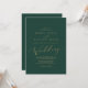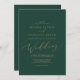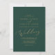 This delicate gold calligraphy green wedding invitation card is perfect for a modern wedding. The romantic minimalist design features lovely and elegant champagne golden yellow typography on an emerald green background with a clean and simple look.