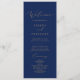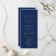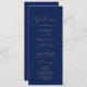 This delicate gold calligraphy navy wedding party program is perfect for a modern wedding. The romantic minimalist design features lovely and elegant champagne golden yellow typography on a navy blue background with a clean and simple look. Include the name of the bride and groom, the wedding date and location, thank you message, order of service, wedding party and an optional "in loving memory" memorial.