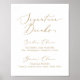 This delicate gold calligraphy signature drinks sign is perfect for a modern wedding. The romantic minimalist design features lovely and elegant champagne golden yellow typography on a white background with a clean and simple look.