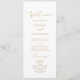 This delicate gold calligraphy wedding program is perfect for a modern wedding. The romantic minimalist design features lovely and elegant champagne golden yellow typography on a white background with a clean and simple look. Include the name of the bride and groom, the wedding date and location, thank you message, order of service, bridal party and an optional "in loving memory" memorial.