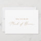 This delicate gold maid of honour proposal card is perfect for a modern wedding. The romantic minimalist design features lovely and elegant champagne golden yellow typography on a white background with a clean and simple look. Customize the card with the name of the bride and the maid of honour. Personalize the back of the card with a personalized message.