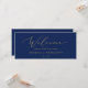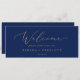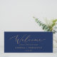 This delicate gold navy hanging seating chart welcome header is perfect for a modern wedding. The romantic minimalist design features lovely and elegant champagne golden yellow typography on a navy blue background with a clean and simple look. The card prints on the front and back (double-sided). Please check the collection for the coordinating table number seating chart cards.