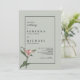 This delicate and modern wedding invitation is perfect for the spring or summer. It features and hand-drawn and painted watercolor lily flower with its stem and leaves bordered in with a pinstripe black frame. The typography is elegant and complimentary. The colour scheme includes dusty green, blush berry pink, forest green, and black. It's pretty, unique, and classy, the perfect design to impress your guests.