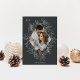 A modern and elegant holiday card that frames your vertical or portrait oriented photo in a beautifully detailed diamond shaped frame with holly leaves, berries, and winter leaves on a rich soft black background. "JOY" appears at the top left, with your family name along the bottom. The year is tucked elegantly into the finely detailed white botanical frame. A delicate and refined nature inspired choice for your Christmas 2021 cards.