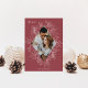 A modern and elegant holiday card that frames your vertical or portrait oriented photo in a beautifully detailed diamond shaped frame with holly leaves, berries, and winter leaves on a soft cranberry red background. "PEACE" appears at the top left, with your family name along the bottom. The year is tucked elegantly into the finely detailed white botanical frame. A delicate and refined nature inspired choice for your Christmas 2021 cards.