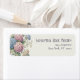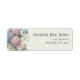 A return address label featuring delicate hydrangea flowers in shades of dusty rose, light purple, and blue.