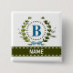 Delicate Ivy Wreath and Bow Name with Monogram B 2 Inch Square Button